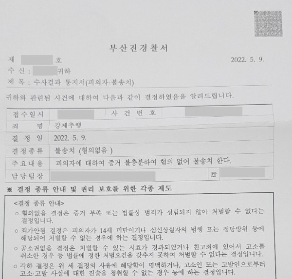 [형사] [최재원 변호사] 강제추행 혐의없음 불송치 결정(부산진경찰서)