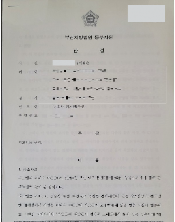 [형사] [최재원 변호사] 명예훼손 사건 무죄 선고 부산지방법원 동부지원