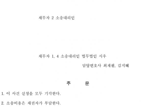 그 결과, 부산지방법원은 채권자의 가처분 신청을 기각하였고, 의뢰인은 좋은 결과를 얻게 되었습니다.
