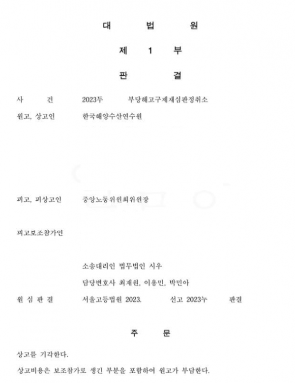 이 사건은 상대방(한국해양수산연수원)이 제기한 행정소송으로,