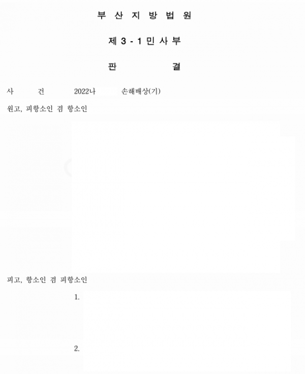 [민사] [최재원 변호사, 김지혜 변호사] 손해배상(기) 일부승소 부산지방법원 2022나XXXX