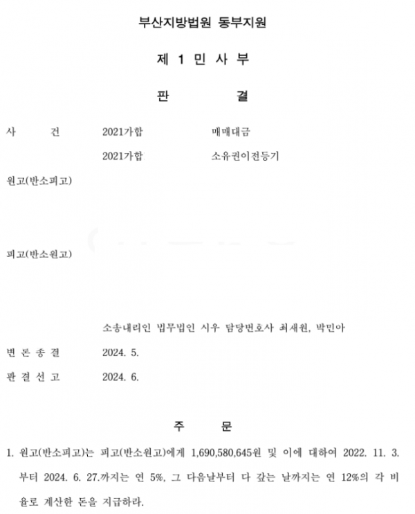 [민사] 최재원 변호사, 박민아 변호사 부산지방법원 동부지원 2021가합XXXXXX (본소)매매대금, 2021가합XXXXXX(반소) 소…