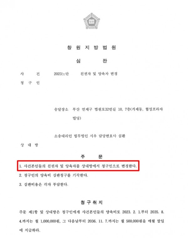[가사] 창원지방법원2023XXXXX 친권자및양육자변경 소송 승소 심환변호사
