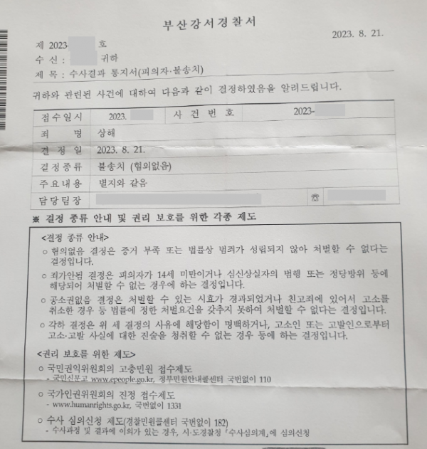[형사] [최재원 변호사] 상해 불송치(무혐의) 부산강서경찰서 업무사례