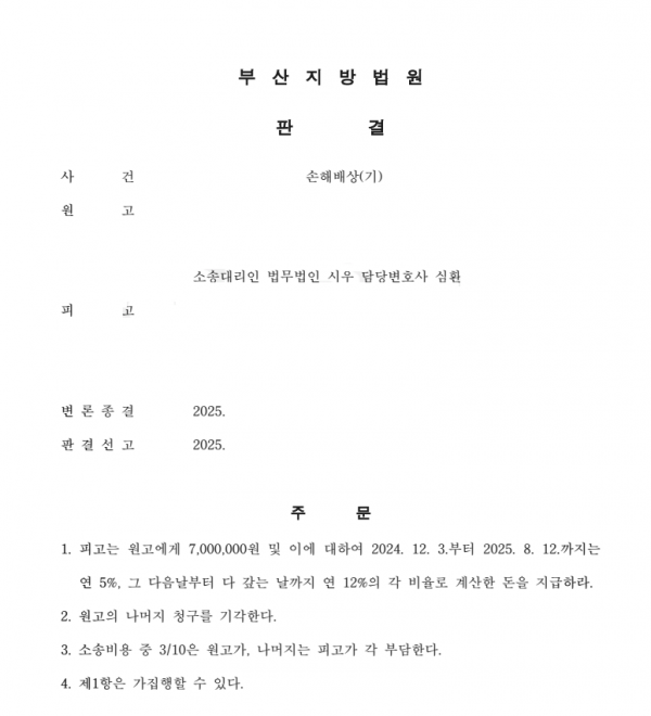 저희 법무법인 시우의 심환, 박민아 변호사는 손해배상 사건에서