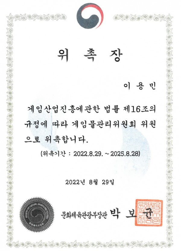 언론보도 이용민 변호사 게임물관리위원회 위원 위촉