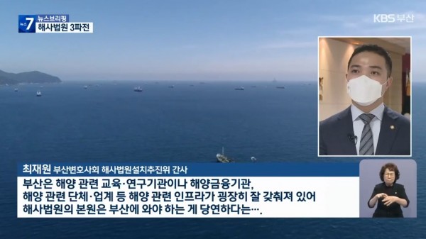 언론보도 최재원 변호사 부산 해사전문법원 설치 관련 KBS뉴스와 인터뷰