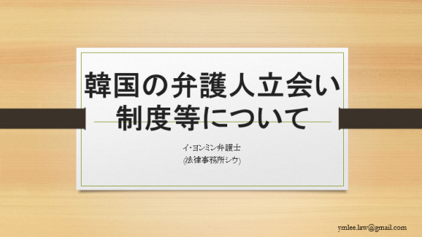 강연발표 이용민 변호사 일본변호사연합회 소속 변호사들을 대상으로 피의자신문에서의 변호인의 참여권에 관하여 강의