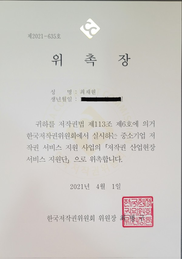 활동소식 최재원 변호사 한국저작권위원회 저작권 산업현장 서비스 지원단 위촉