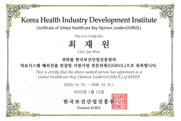 활동소식 최재원 변호사 한국보건산업진흥원 의료시스템 해외진출 컨설팅 지원사업 전문위원 위촉