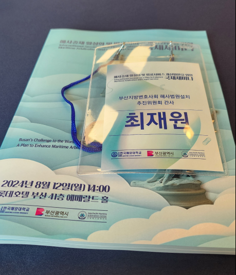 저희 법인의 최재원 변호사님께서는 2024. 8. 12.자 롯데호텔 부산에서 진행한 '해사중재 활성화 및 법률서비스 개선방안을 위한 국제세미나'에 토론자로 참석하셨습니다. 최재원 변호사님은 부산지방변호사회 해사법원유치특별위원회 간사로 활동중이신 바, 우리나라 해사 중재의 활성화에 관한 제언과 관련 의견을 개진하셨습니다. 앞으로도 저희 법인의 구성원들은 해사분쟁 해결을 위하여 최대한의 노력을 기울일 것을 약속드립니다. 감사합니다.