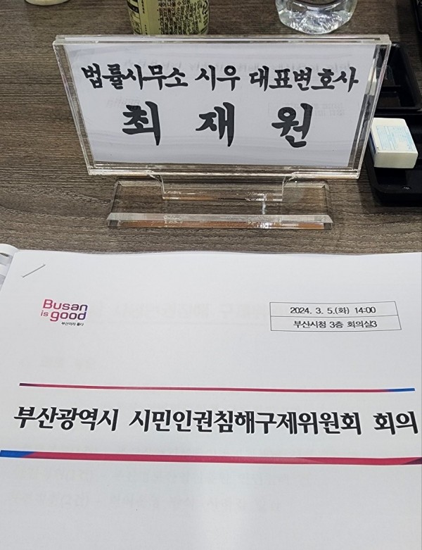 활동소식 최재원 변호사 부산광역시 시민인권침해구제위원회 회의 참석
